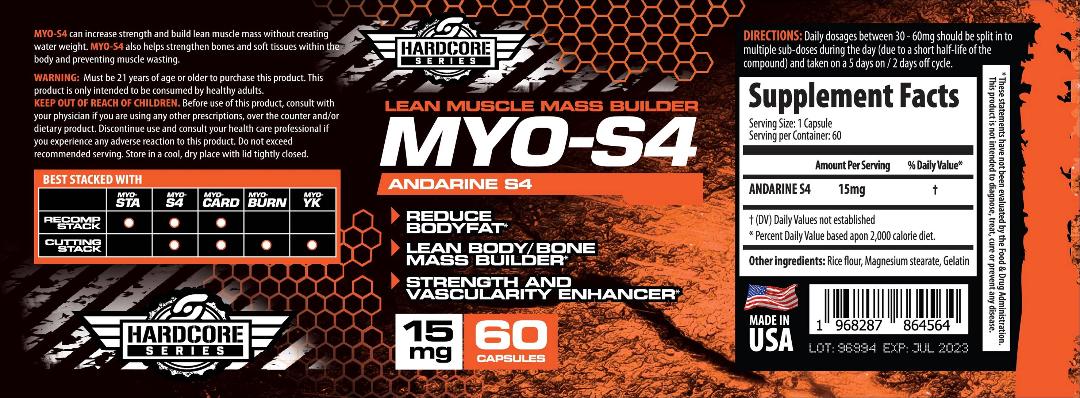 S4 provides huge amounts of strength, stamina and aides in rapid recovery. There is no estrogen conversion, no water retention or bloat and no toxicity. Thanks to its anabolic nature, the strength gains come rapidly but lean mass gains is the primary target from use.